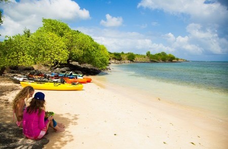 We are located on Grenada’s south west coast, only a 10-minute drive from Grand Anse. Based at Whisper Cove Marina in Woburn Bay, close to the picturesque Hog Island, the perfect setting for a kayak tour! Our top-quality, sit-on-top kayaks are extremely comfortable. We cater for novices and experts alike, but no previous kayaking experience is necessary. (However, you must be able to swim and be comfortable in and around the sea).