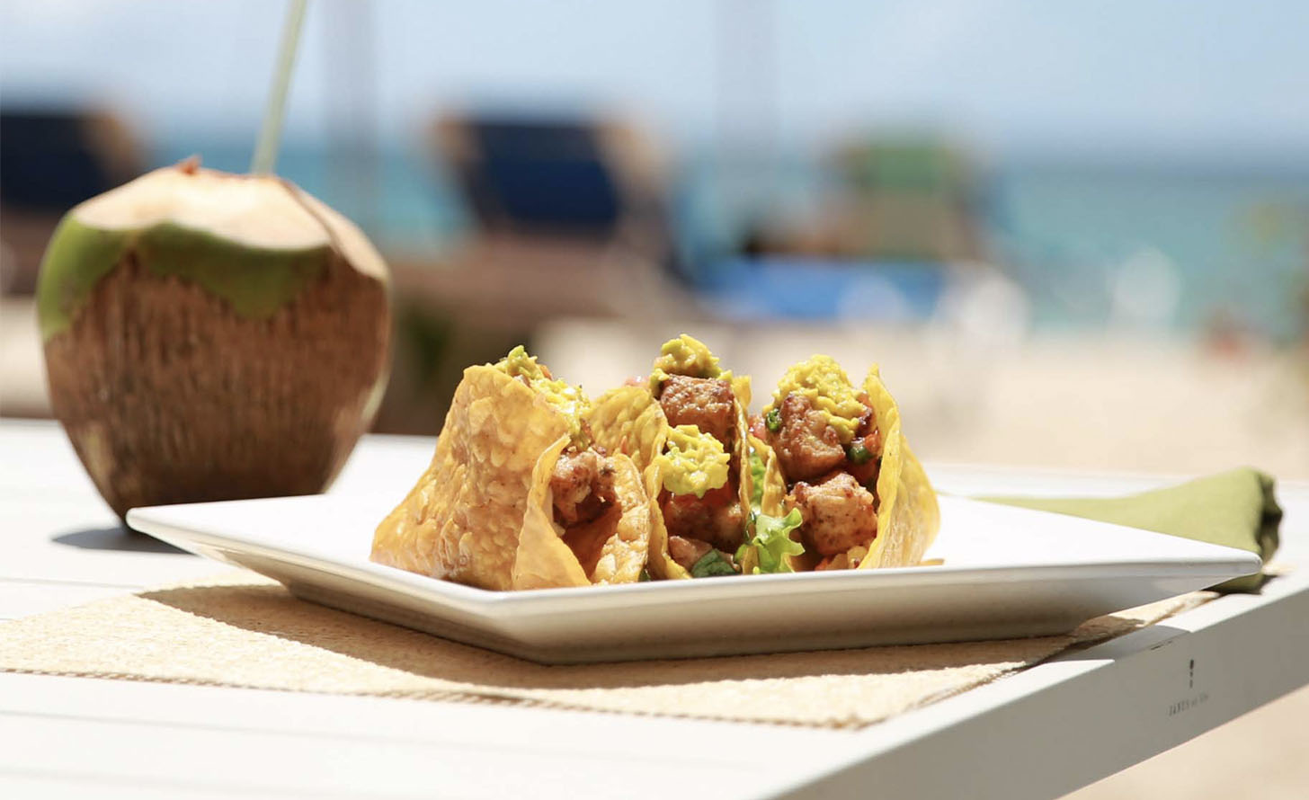 Surrounded by beautiful tropical gardens, directly on Grand Anse Beach and just meters from the turquoise waters of the Caribbean, the Beach Cabana is open daily serving BBQ, salads and snacks as well as drinks from 10am until the sun goes down. Chill out, relax, enjoy the view and ponder the possibilities of a short nap under the palms.