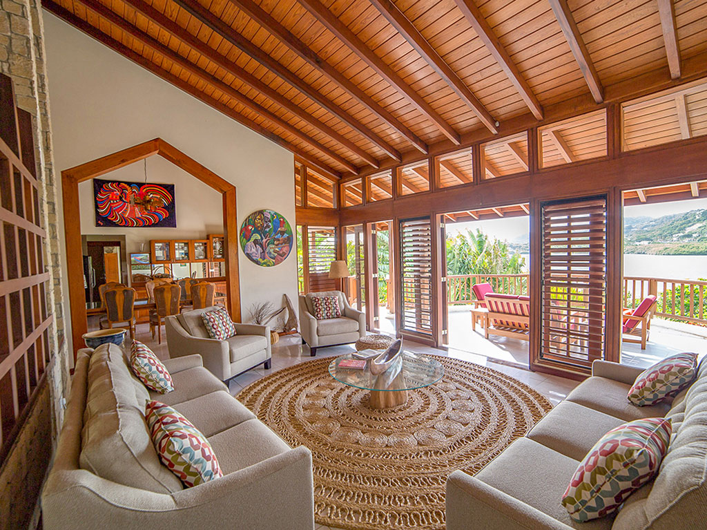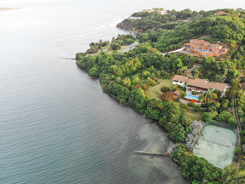 Solitaire is a serene waterfront villa, located on a two acre estate of beautifully landscaped gardens with sweeping views of Westerhall Bay and the mountains beyond. This private retreat was designed as a luxurious getaway in the quiet of the island’s most exclusive gated community. With unobstructed views, a pool, private tennis court and waterfront access, you can stroll the grounds enjoying a vast display of island flora, experience the sea breezes while you gaze out over the ocean, and fall asleep to the sounds of the waves gently lapping on the shore. Ideal for families, couples, large groups, retreats and special events. This villa is the perfect getaway; relaxing for adults and with lots to keep kids entertained.